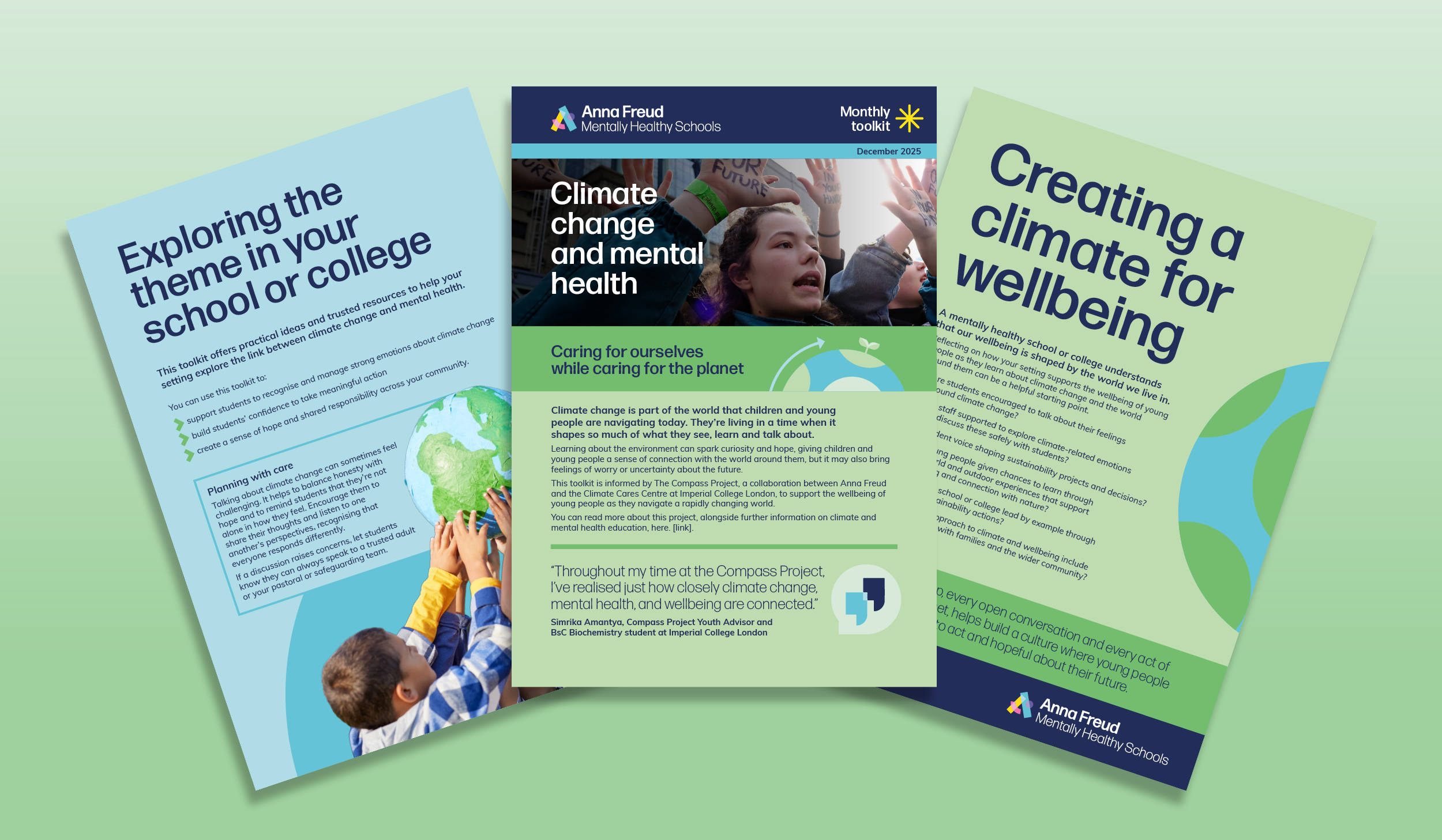 This month’s toolkit is informed by The Compass Project, led by the Climate Cares Centre at Imperial College London in collaboration with Anna Freud, to support the wellbeing of young people as they navigate a rapidly changing world.